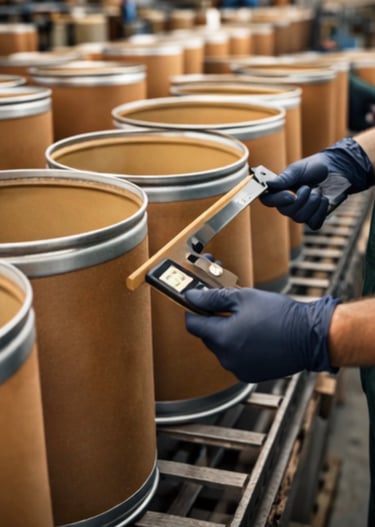 Heavy-duty fiber drums for bulk packaging. Suitable for hazardous chemicals, solids & powders. Strong walls; secure sealing options.